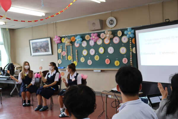 9月2日に3人の歓迎のWelcome Partyを開催し、会議室がいっぱいになるたくさんの生徒たちと3人を温かく歓迎しました。3人からは出身地の写真を見せてもらい、文化紹介のクイズを楽しみました。また、国際交流担当生徒たちが夏休み中に作成した学校紹介動画を見せたり、昭和高校クイズを3人にやってもらい、楽しい時間を共に過ごしました。留学生3人と生徒たちは、このパーティーを通じてとても仲良くなることができました。