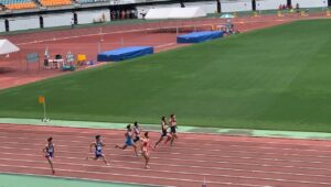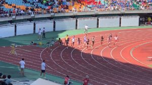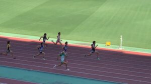 男子200mでは、林誠太君が登場。予選は4組3着+2で実施され、21秒84 2着(自己新)で突破。続く準決勝は2組4着で実施され、21秒81(自己新)で6着。やはり全体の10番目で惜しくも決勝を逃しました。しかし、自己ベストを2本立て続けに出せるメンタリティーは素晴らしいと感じました。