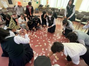 もちろん、最初にはマリエさんの母国デンマーク、学校生活、家族についてのプレゼンテーションを楽しみました。その後、ハロウィーンについてのクイズとゲームをして、楽しいひと時を過ごしました。