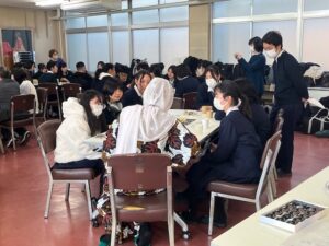 令和6年1月30日(火)に、名古屋大学EIUPのご協力により、大学院在籍の留学生5名と引率1名の合計6名をお招きした「Showorld Café(ショウワールド・カフェ)」という新しいイベントで、参加生徒たちは文化交流を楽しみました。