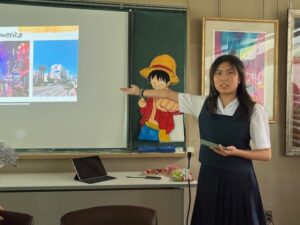 これまではお別れ会を開催することはあまりありませんでしたが、長期滞在で多くの生徒たちから親しまれていたマリエさんのため、国際交流企画の生徒たちが企画をし、歓迎会と共にお別れ会を開催することになりました。