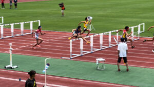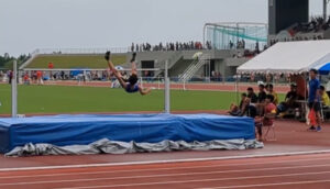 また、あと一歩のところで出場を逃したのが、男子4×100mRの安達陽色くん、亀田拓斗くん、林優磨くん、小松祐太くん(全員北陵中出身)と男子走高跳の両角遼真くん(大府中出身)。男子4×100mRは決勝までコマを進めましたが、8位の結果に悔しさをかみしめました。男子走高跳は自己ベストを5㎝更新する1m85㎝を一回目でクリアしましたが、次の高さが跳べず、7位とあと一歩でした。