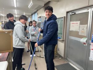また初日は、武道場にてWelcome委員会による「交歓会」を行い、日本の文化を体験してもらいました。剣道部の御協力をいただき、剣道体験、着物試着体験、けん玉、折り紙、あやとりなどの遊び体験をしてもらい、生徒同士の楽しい交流と文化体験の素晴らしいひと時を過ごしました。
