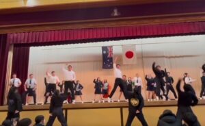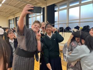 初日の12月2日(月)には、全校あげて生徒会主催の「歓迎集会」を体育館にて開催しました。吹奏楽部によるオーストラリア国歌の演奏とともに、花道を通ってバディー生徒に付き添われて入場したアーンショウ生は、温かい歓迎に歓喜の声をあげていました。ダンス部によるパフォーマンス、書道部による書道パフォーマンス、Welcome委員会によるソーラン節対決を一緒に楽しみました。(生徒会の投稿を御参照ください。)