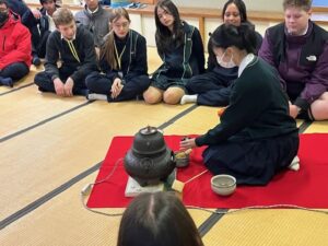 5日(木)の授業後は、茶道部の協力による茶道体験でした。正座で座ることに慣れてないアーンショウ生でしたが、礼儀作法を一生懸命学ぼうとしていました。