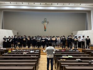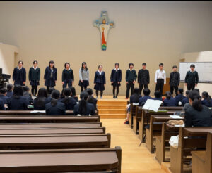 文化部/部活動 合唱部 新春アンサンブルのつどい(プレアンサンブルコンテスト)に参加しました 2025年1月7日 先日、本校合唱部を含む様々な学校の合唱部が一堂に会し、アンサンブルコンテストのために選曲した曲を演奏し合う貴重な機会をもちました。 このイベントでは、互いのパフォーマンスを聴き合うことで、各合唱部が持つ独自の魅力や表現力を感じることができました。本番のコンクールに向けて、より一層の良い刺激を受けることができたと感じています。 私たちは、これからも日々の練習を重ねて、さらに素晴らしい演奏を目指して頑張っていきますので、皆様の温かい応援をどうぞよろしくお願いいたします。