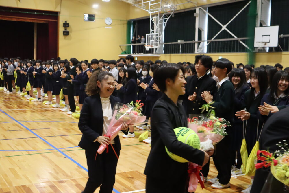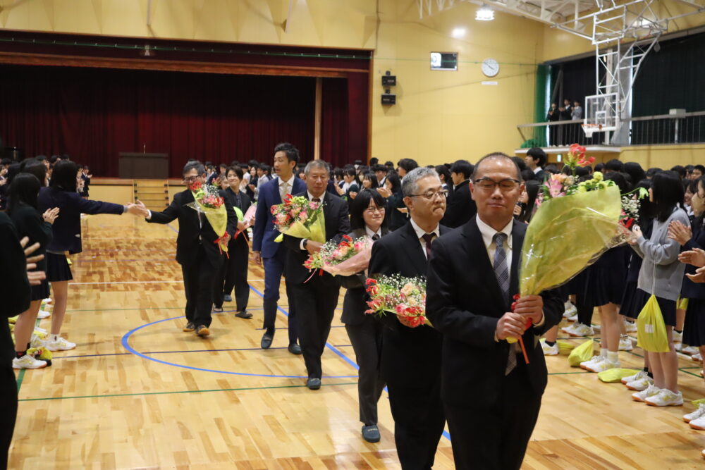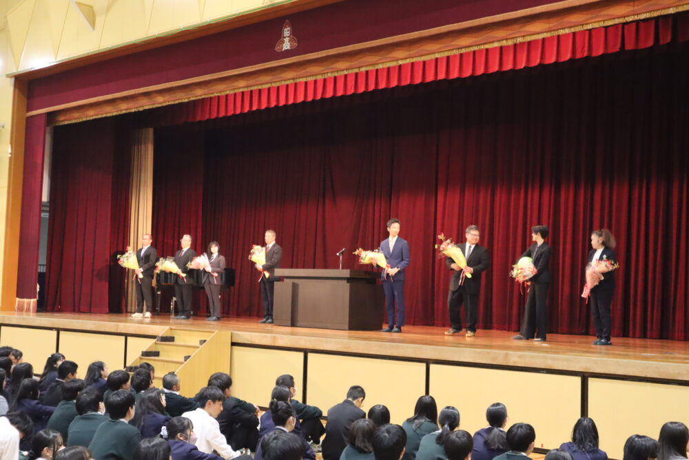 転任された先生方を拍手で送りだしました。
