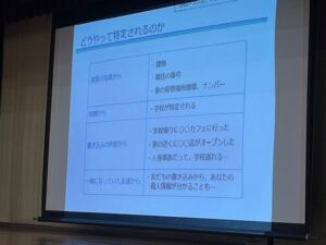 川島様から、警察の立場から見えている実際の話を交えながら、自分のことの様に考えられるよう分かりやすくお話をいただきました。便利なアイテムは、生活を豊かにするためだけに活用する。それを生徒自身が考える良い機会となりました。