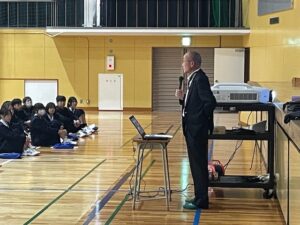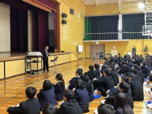 4月10日(木)に、瑞穂警察署 生活安全課 少年係 スクールサポーターの川島様をお招きし、スマートフォンの使用・ネット安全に関する講話を1年生対象に実施いたしました。