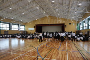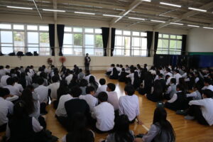 学校生活/学校行事 令和7年度 第1回防災訓練を行いました。 2025年5月30日 令和7年度、第1回防災訓練を行いました。 地震を想定した安全確保行動をとった後、体育館と武道場に分かれて避難を行いました。その後は防災意識を高めるための講話をそれぞれの場所で実施しました。