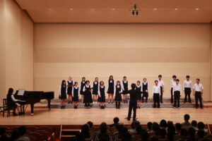 文化部/部活動 合唱部 第84回愛知県合唱祭に参加しました 2025年6月11日 合唱部は第84回愛知県合唱祭に参加しました。1年生にとっては初めての舞台、3年生にとっては引退の舞台で、全学年が一緒に歌う特別な機会となりました。短い練習期間でしたが、本番ではその成果をしっかりと発揮し、ご来場いただいた皆様から温かいご声援をいただきました。これからも素晴らしい演奏ができるよう、頑張って活動していきますので、引き続き合唱部への応援をよろしくお願いいたします。
