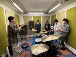 1年生は入部から約1か月ほどは仮のバンドを組み、先輩のセレクトした曲から1曲を選んでやってみる(そしてすく解散)という取り組みをしています。