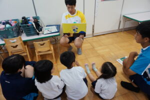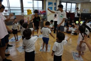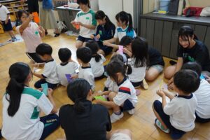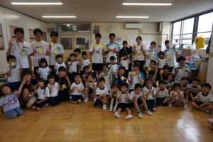 遊びの内容は事前にどんな遊びが楽しんでくれるか案を練って準備をしていきました。あっという間で楽しいひと時を過ごさせて頂きました。しかし、当日は思うように進まないこともあり、事前準備の大切さや難しさを学び、貴重な経験をさせていただきました。今回の反省を生かして、また後期にもお茶の花こども園に訪問が出来たらいいと計画をしています。
