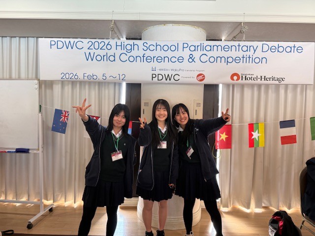 令和8年2月5日~12日まで埼玉県熊谷市で開催された「PDWC(高校生英語パーラメンタリー・ディベート世界交流大会)」に本校2年生徒3名が参加しました。