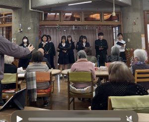先日、合唱部が地域の福祉施設へ慰問演奏に伺いました。