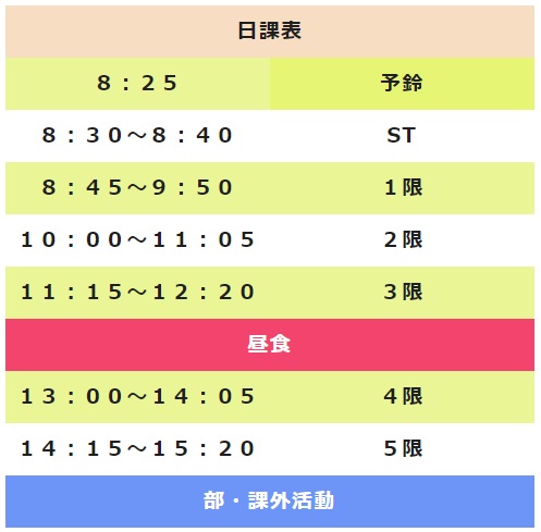 終業時間が毎日15時20分と早いので、授業後の部活動や生徒会活動等の時間が確保できる。